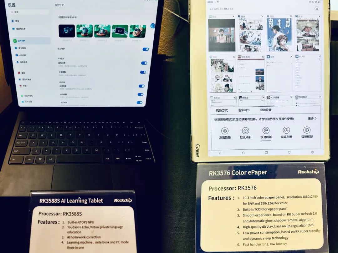 同时还有最新搭载RK3576的电子书产品和桌面机器人,电子书包括传统黑白电子纸及彩色电子书,具有超低功耗、手写低延时的优势,同时基于RK自研的Auto Clear和连续刷新算法,有效去除快刷残影,相比传统快刷方案,基于瑞芯自研的快刷算法,RK3576方案速度提升2.5倍,视频播放帧率可达22fps,网页滑动及阅读翻页丝滑流畅。