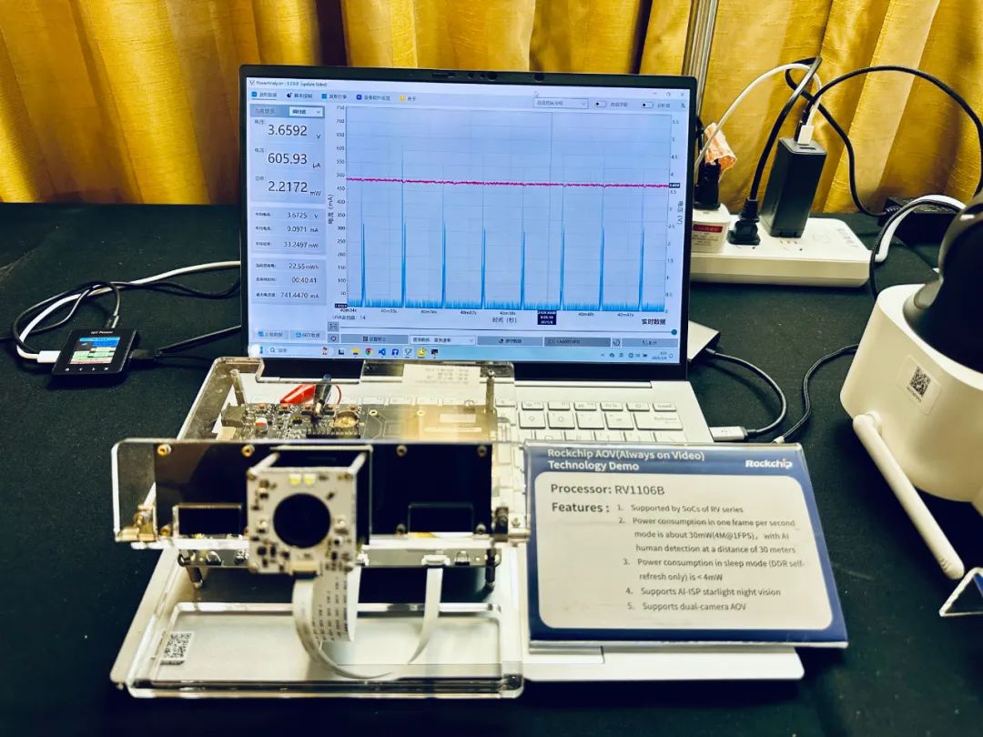 机器视觉展区,展示了基于金年会官方网站入口多款视觉方案的丰富产品形态,包括4K60运动DV、AI智能视觉眼镜、双目AOV IPC、双目可视门铃、打猎机、医用内窥镜等,广泛应用在安防、娱乐、教育办公、医疗等场景。展品采用RV1106B系列及RK3576,重点演示了金年会官方网站入口AOV超低功耗及新一代AI-ISP技术,支持一秒一帧或者一秒多帧低帧率全时录像,极低功耗运行;以及暗夜拍摄效果画面亮度及色彩还原度效果更好。