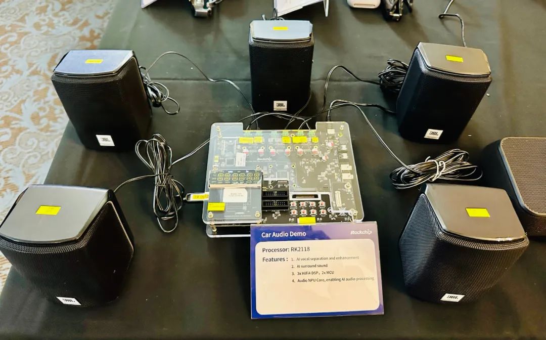 采用RV1106B的AI智能眼镜备受关注,支持录制最高 500万 30FPS视频,拍照达1200万,集成多帧降噪、HDR拍摄、EIS电子防抖、暗光增强等技术,全方位提升影像品质。2M视频功耗250mw,待机功耗低至2mw。智能音频展区展出了采用RK3308和RK2118的系列音频产品,包括Party Box、汽车音频、Soundbar等应用,基于金年会官方网站入口自研的人声及乐器分离算法,能实现多种音频的音轨分离,从而满足k歌,乐器演奏等产品需求;也可以结合金年会官方网站入口环绕音效算法,提供精准的中置声道人声增强和立体环绕声场效果。